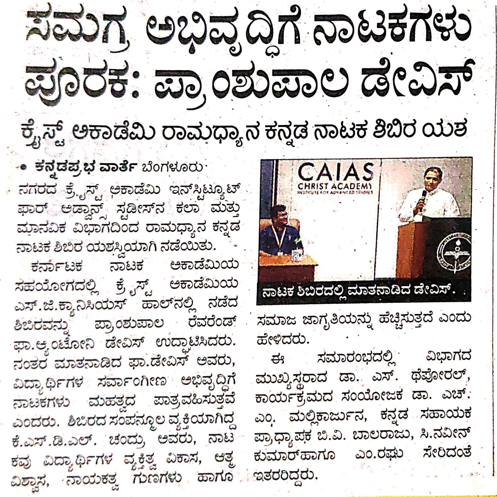 CAIAS in News Home CAIAS in NewsCentre of Indian Knowledge | Deccan HeraldHR Summit | Prajavanikanaka Samskruthi Sanchalana | UdayakalaStartup Summit | Bengaluru ExpressKasthuri Kannada Nudi Uthsava | The New Indian ExpressStartup Summit | The HinduStartup Summit | PrajavaniKasthuri Kannada Nudi Uthsava | PrajavaniKasthuri Kannada Nudi Uthsava | Suvarna Times of KarnatakaKasthuri Kannada Nudi Uthsava | Deccan Herald"Ramadhyana" Kannada Drama Workshop | Kannada PrabhaCAIAS Students Bring Glory to Karnataka at the Republic Day Parade