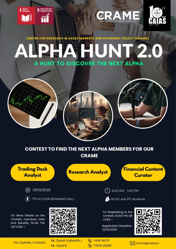 Organised by the Centre for Research in Asset Markets and Economic Policy (CRAME). A contest to find the next Alpha members for the roles of Trading Desk Analyst, Research Analyst, and Financial Content Curator.