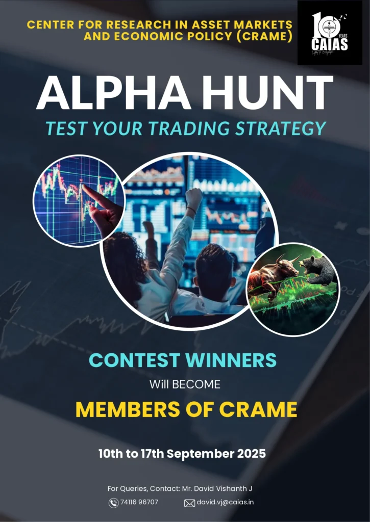 Organized by the Center for Research in Asset Markets and Economic Policy (CRAME) at CAIAS. This intensive contest challenges participants to prove their market acumen. Contest winners will earn the prestigious opportunity to become Members of CRAME.