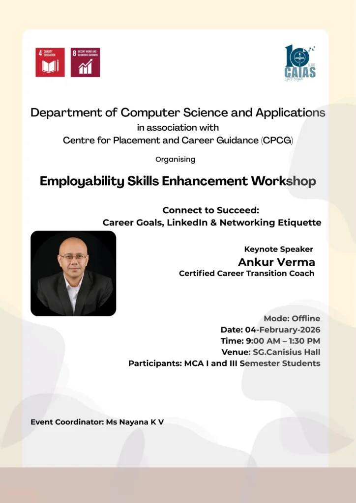 Organised by the Department of Computer Science and Applications in association with Centre for Placement and Career Guidance (CPCG). An intensive session featuring Keynote Speaker Ankur Verma, Certified Career Transition Coach.