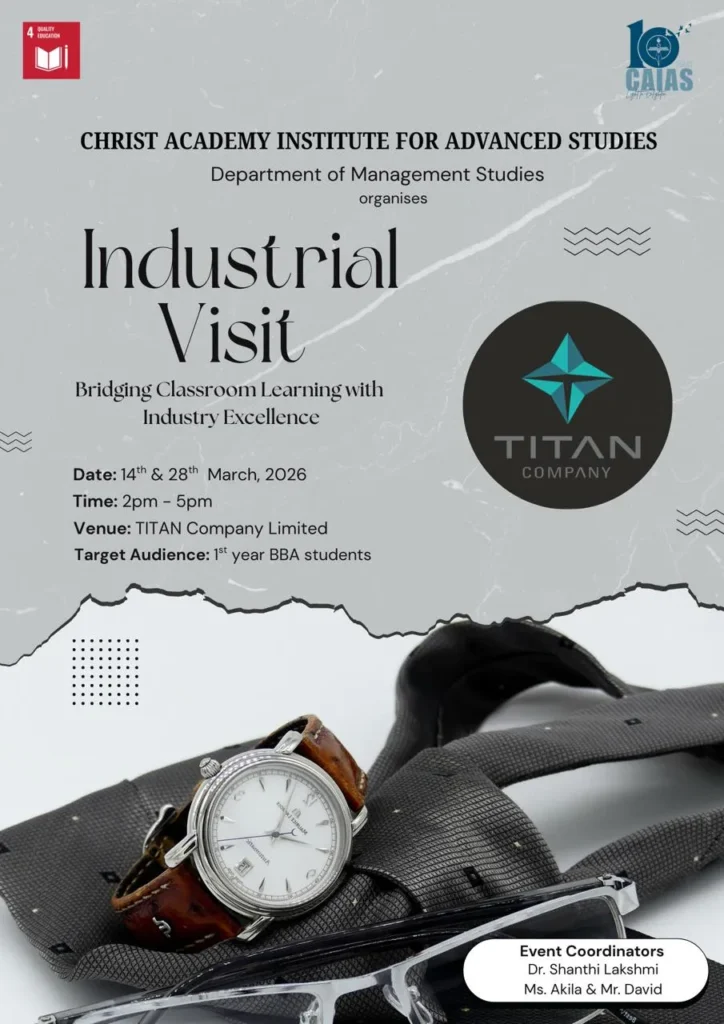 Organised by the Department of Management Studies at Christ Academy Institute for Advanced Studies. This industrial visit aims to bridge the gap between academic theory and professional practice.