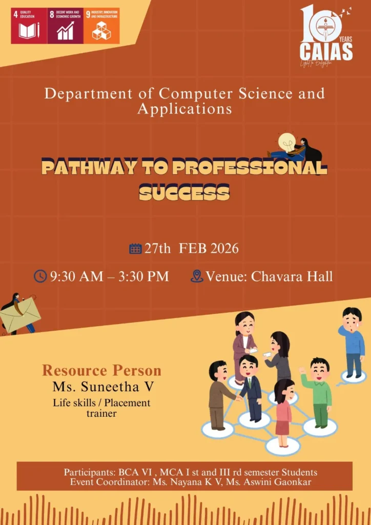Join us for an insightful session with Ms. Suneetha V, Life skills / Placement trainer. This program is specifically designed for BCA VI, MCA I and III semester students.