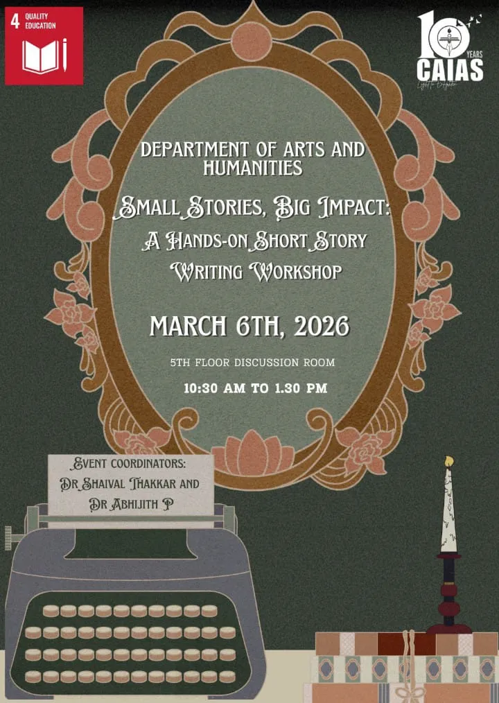 Organised by the Department of Arts and Humanities. Unleash your creativity and master the craft of storytelling in this immersive workshop focused on narrative structure and impactful writing.