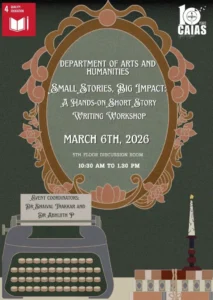 Small Stories, Big Impact A Hands-on Short Story Writing Workshop Organised by the Department of Arts and Humanities. Unleash your
