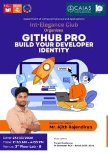 GITHUB PRO: BUILD YOUR DEVELOPER IDENTITY Int-Elegance Club Organizes Organised by the Department of Computer Science and Applications. A hands-on