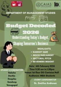 Budget Decoded 2026 Understanding Today’s Budget, Shaping Tomorrow’s Business Organised by the Department of Management Studies. Join us for a