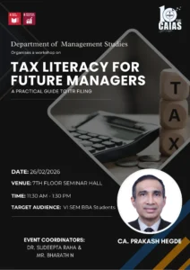 Tax Literacy for Future Managers A Practical Guide to ITR Filing Organised by the Department of Management Studies. This workshop