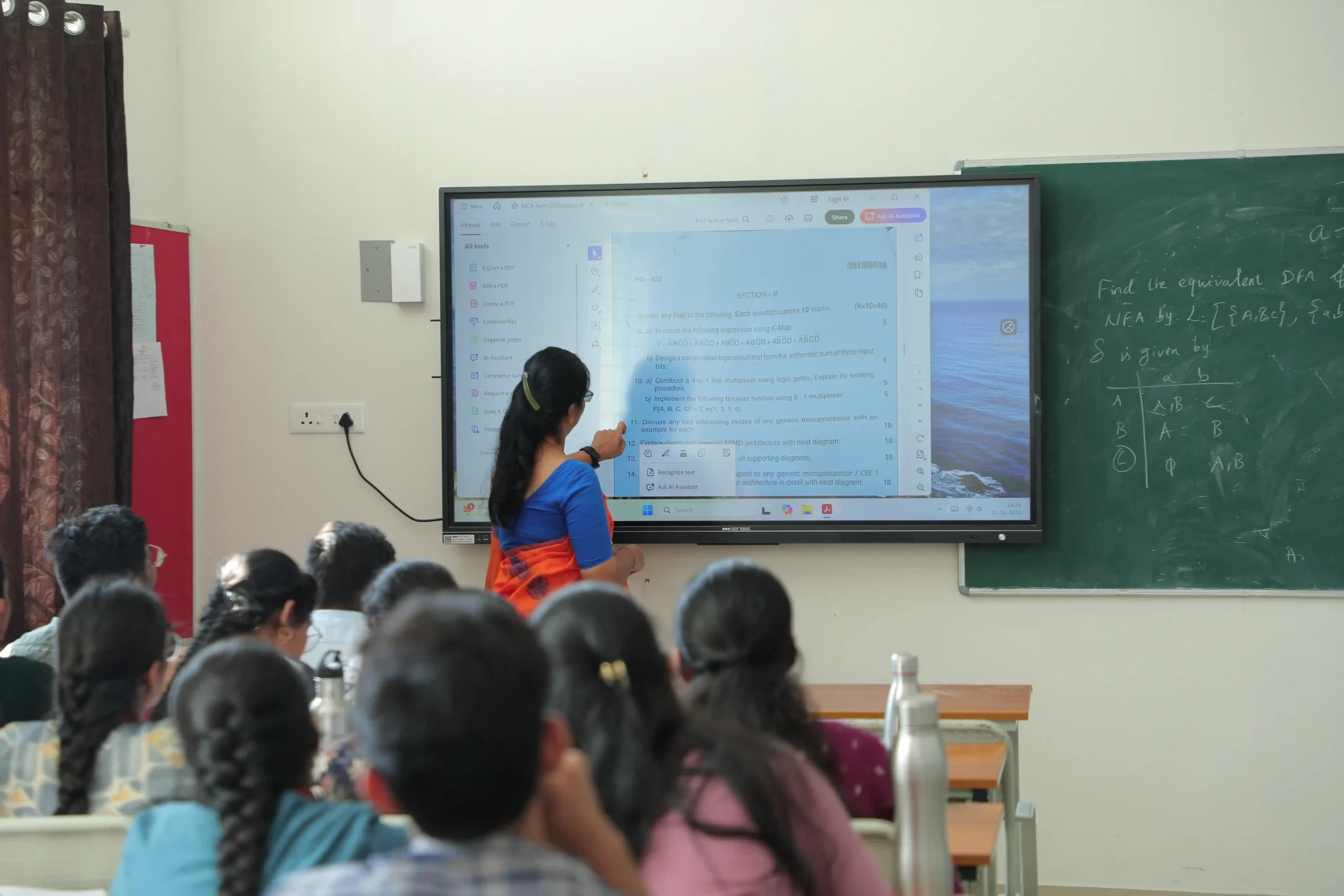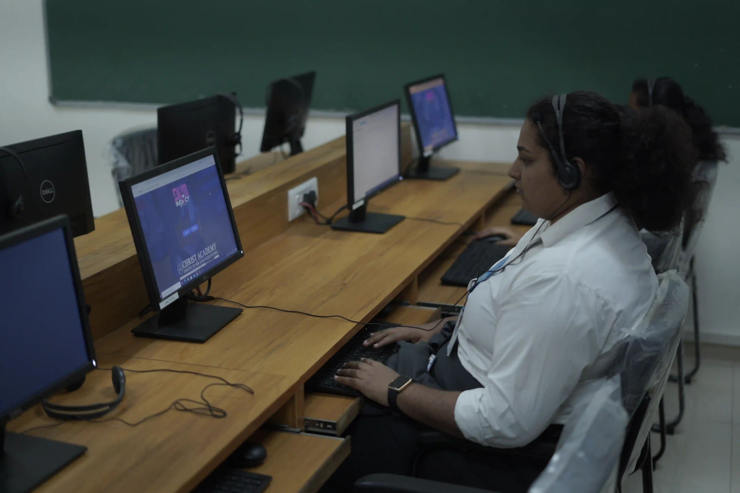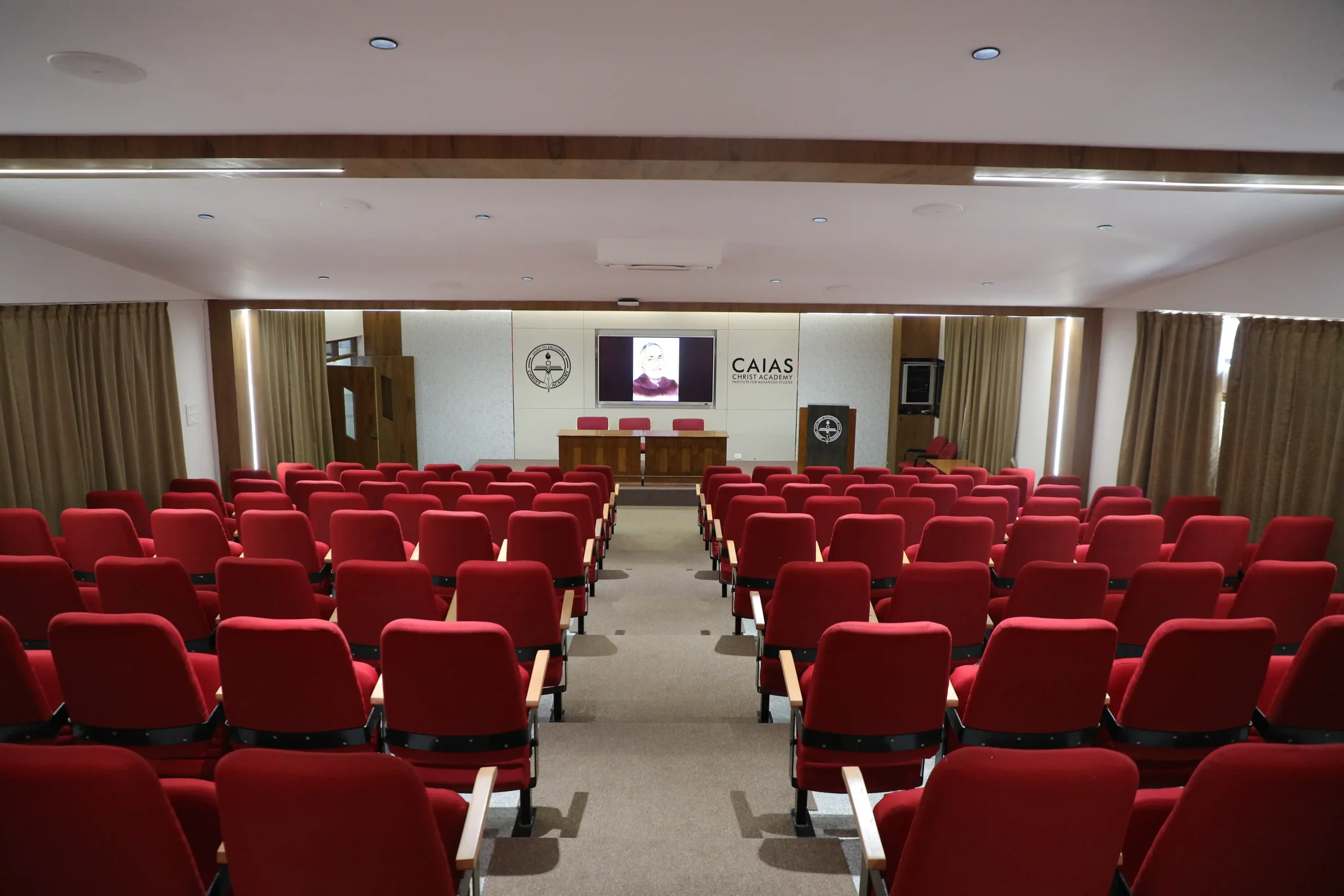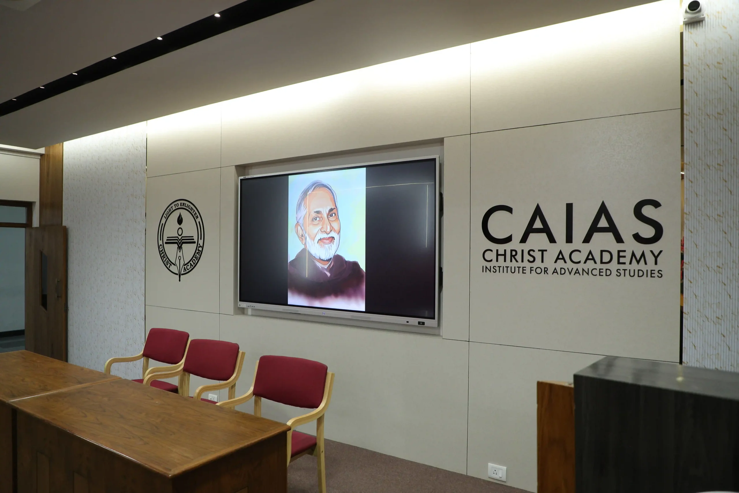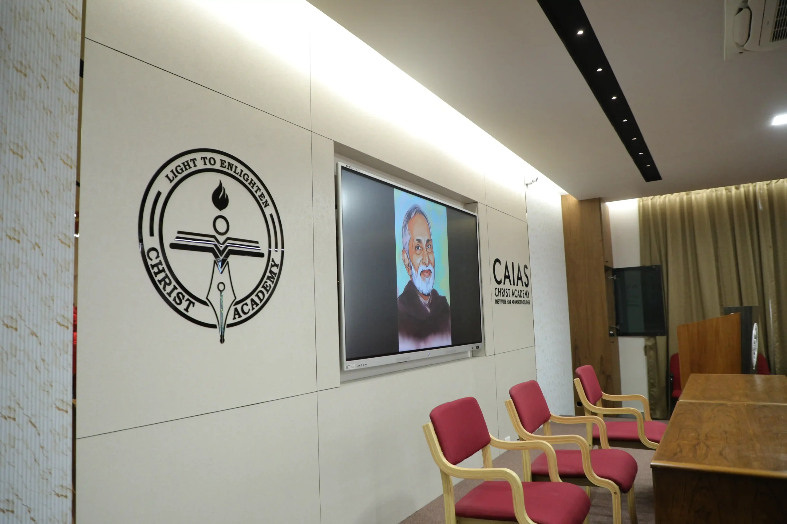 Christ Academy Institute for Advanced Studies facilitates learning through audio-visual classrooms. In addition to learning theory from professors, students enjoy learning from videos shown on the screens installed in every classroom.Each classroom comprises an interactive table monitor connected to a projector and speakers. The entire campus is Wi-Fi enabled. Any student with a personal laptop connected to the server can access the internet and server services.