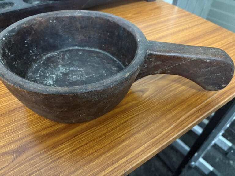 The Marada Battalu is a timeless piece of South Indian heritage, traditionally used in Kannada households for scooping, measuring, and serving. Hand-carved from a single, solid block of seasoned hardwood—most commonly Jackfruit wood (Halasina mara), Teak, or Rosewood—this vessel was built for durability and daily agricultural use. While often used alongside formal measurement units like the Maana or Seru, the Marada Battalu is prized for its functional design, featuring thick walls and an integrated handle carved directly from the timber. Its deep interior is perfect for handling grains like rice and ragi, while the natural insulating properties of the wood make it an ideal “sattvic” choice for serving traditional liquids like buttermilk or hot ganji.