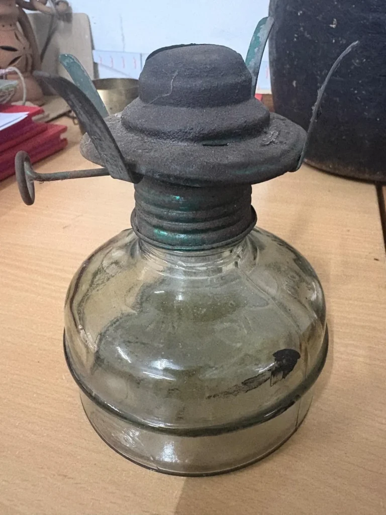 Culturally, these lamps are more than just lighting devices; they are enduring symbols of pre-electric domestic life in Karnataka and across India. From being used for late-night study sessions to lighting up temples and kitchens, the Lantern (ಲಾಂಟರ್ನ್) was an essential household companion. Today, these lamps are cherished as vintage collectibles and decorative antiques, often bearing the beautiful soot marks and metal oxidation that tell stories of years of service. Whether kept as a backup for power cuts or as a rustic decor piece, the Kerosene Deepa remains a glowing reminder of the grit and simplicity of early 20th-century Indian households.