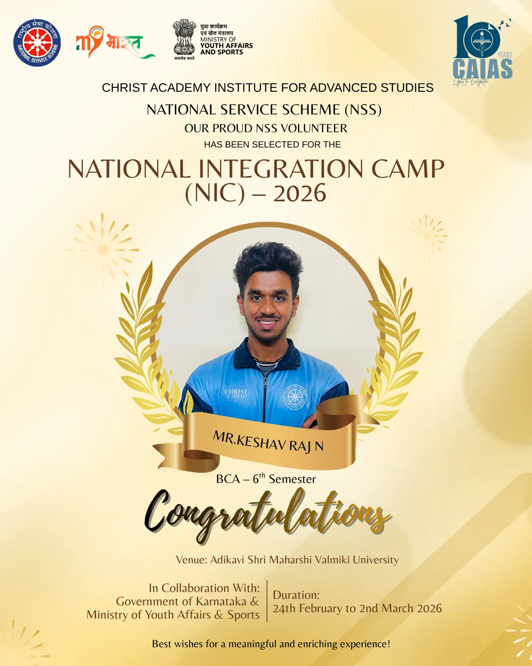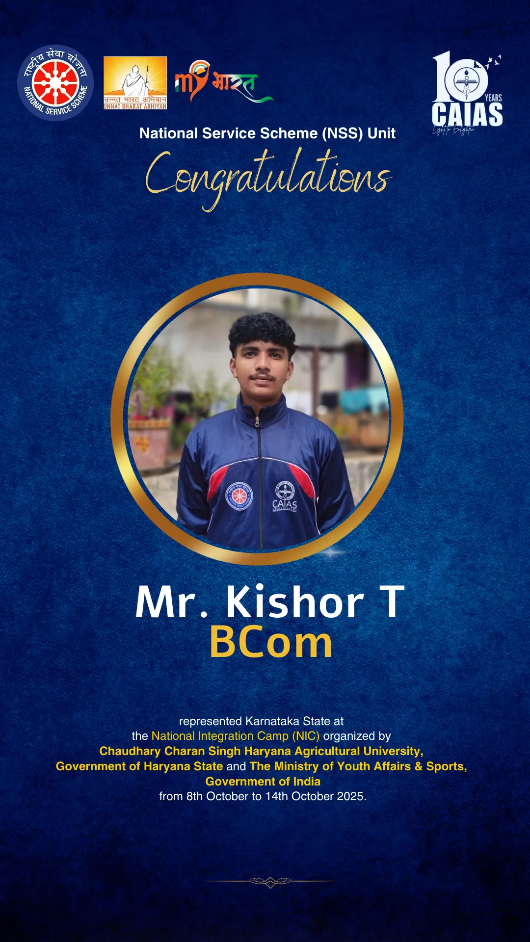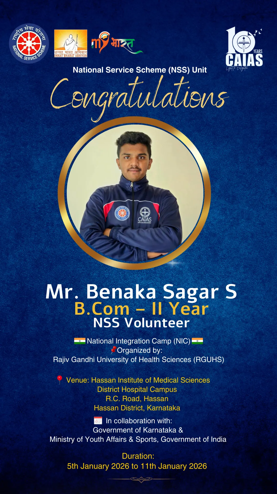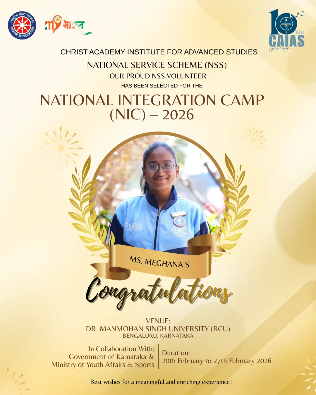 The motto or watch word of the National Service Scheme is ‘NOT ME BUT YOU’. This reflects the essence of democratic living and upholds the need for selfless service and appreciation of the other person’s point of view and also to show consideration for fellow human beings. It underlines that the welfare of an individual is ultimately dependent on the welfare of society as a whole. Therefore, it should be the aim of the NSS to demonstrate this motto in its day-to-day program.