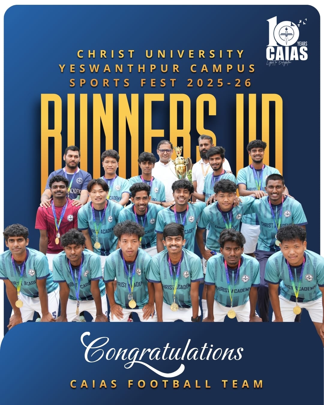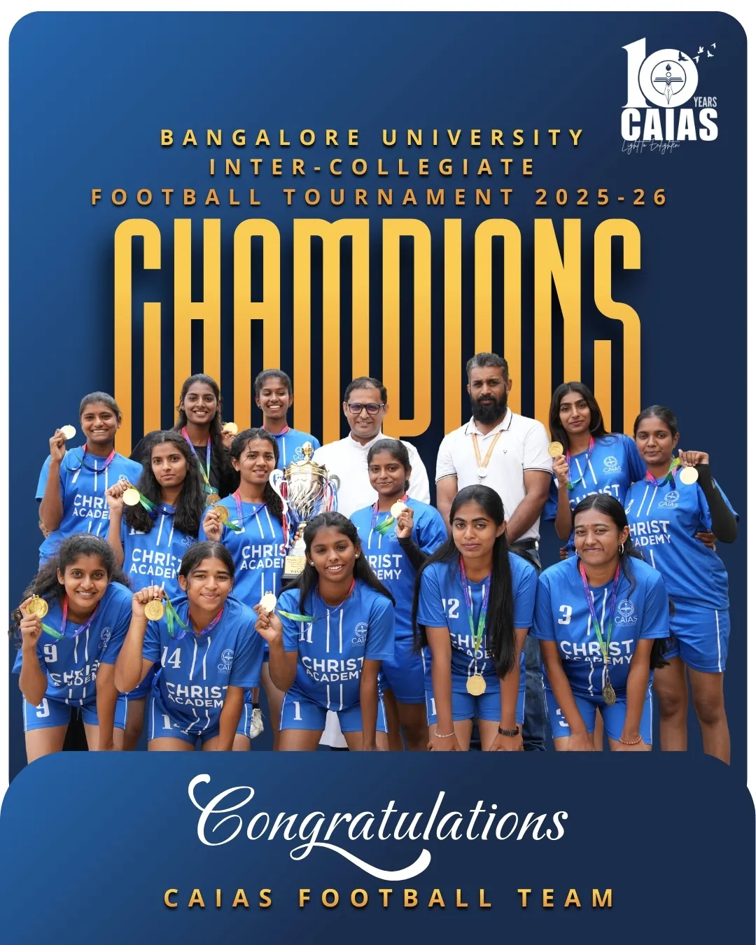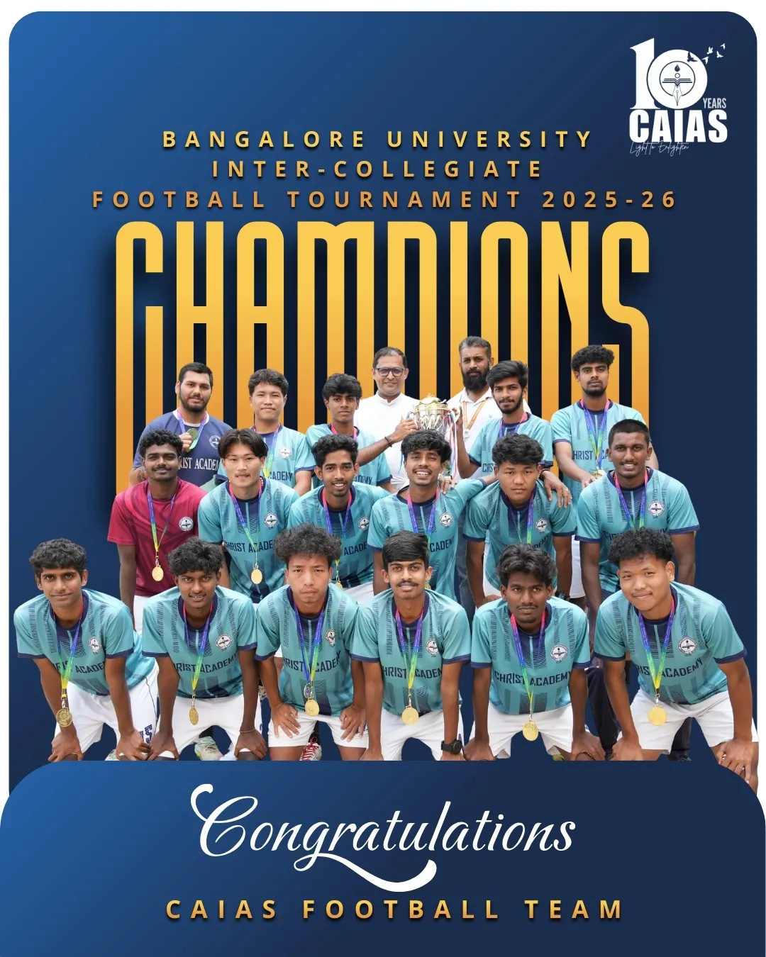 Sports – Achievements & Awards Home Sports Sports – Achievements & Awards Overview Achievements & Awards Activities & Events Sports Faculty Scholarships & Support Bangalore University Intercollegiate Competition 2025 A Season of Excellence: CAIAS Athletes Shine at Inter-Collegiate Fests Making Us Proud: Our Student Athletes