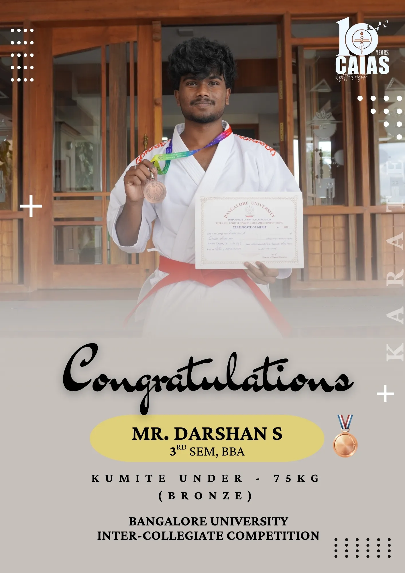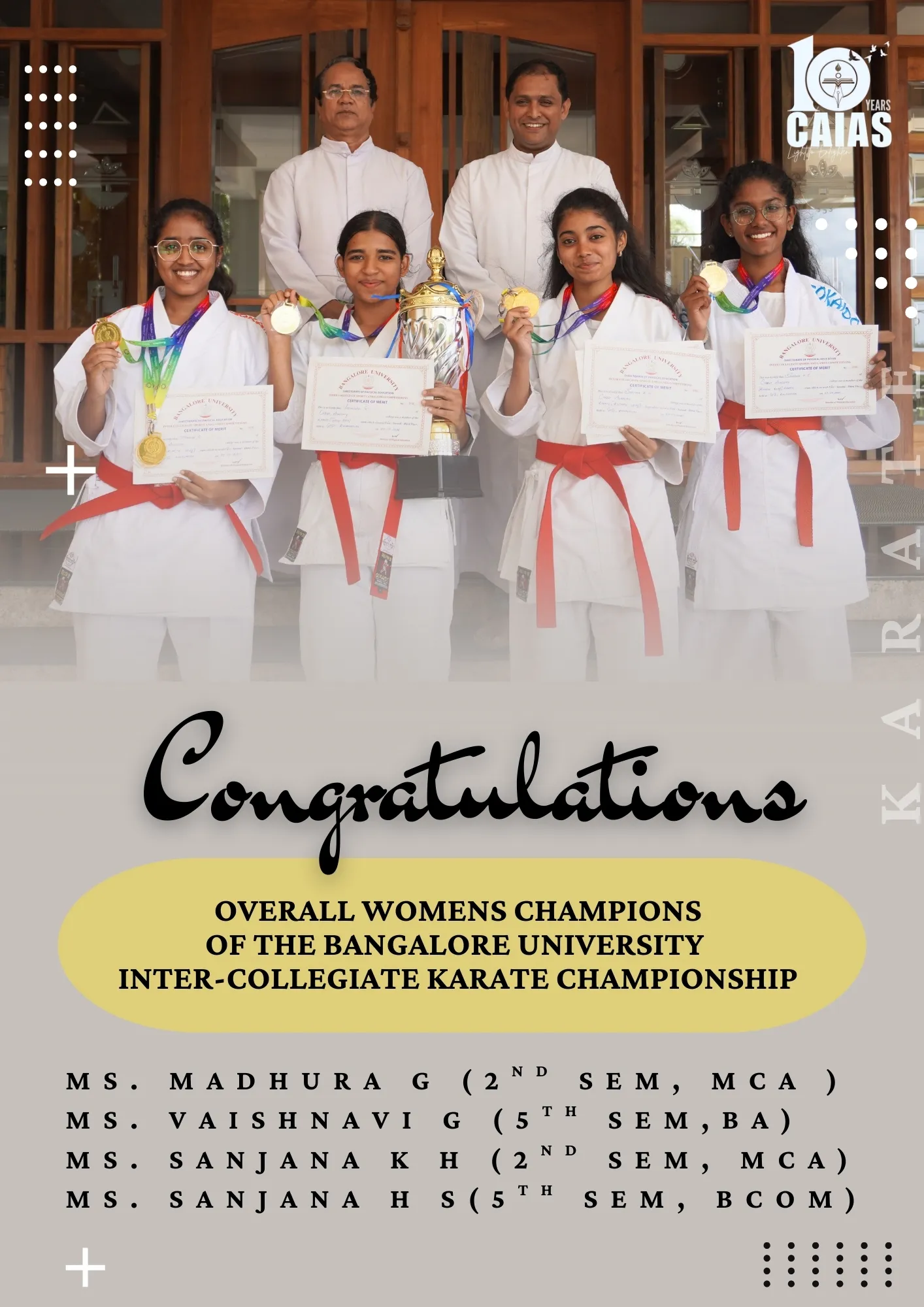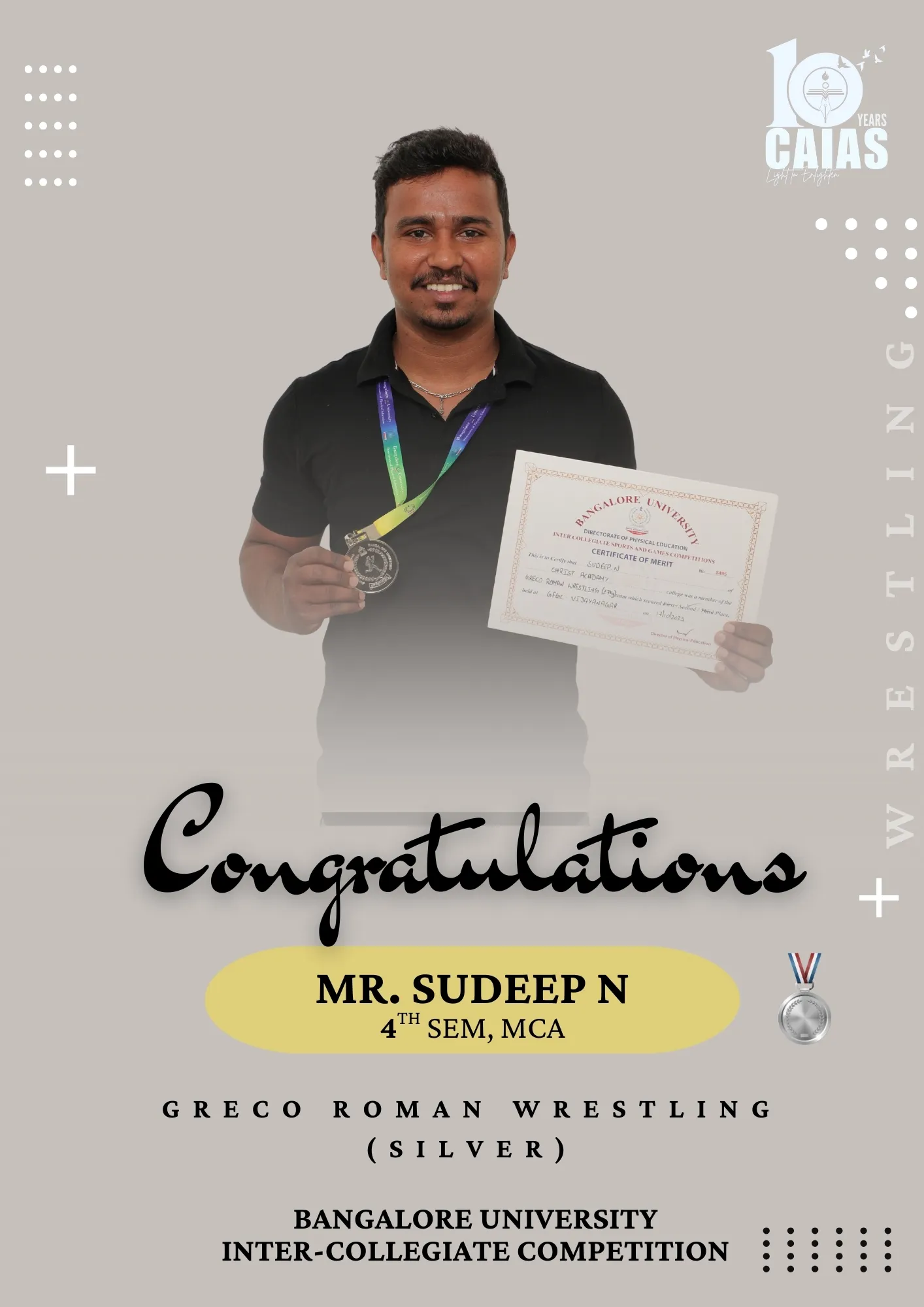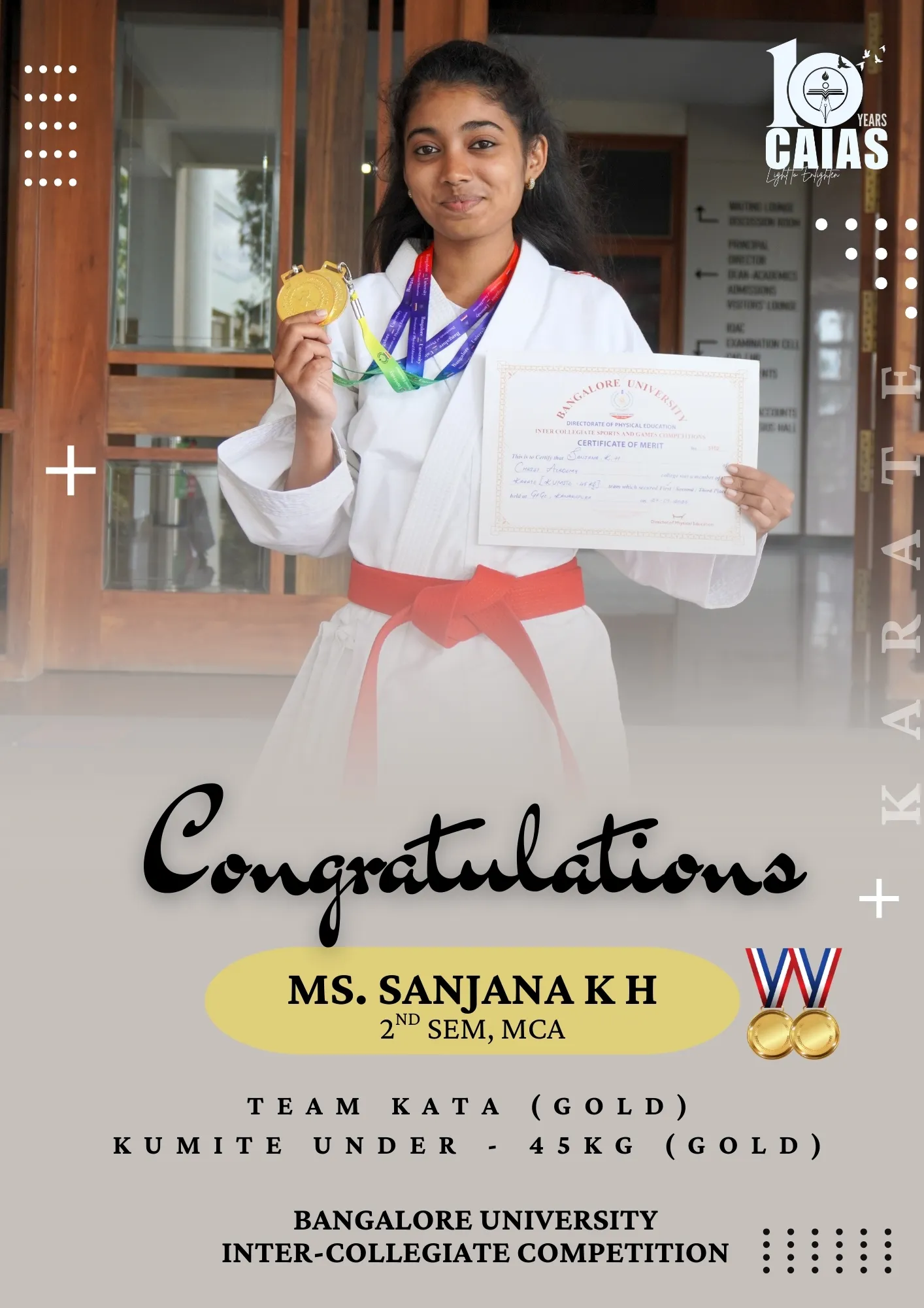 Sports – Achievements & Awards Home Sports Sports – Achievements & Awards Overview Achievements & Awards Activities & Events Sports Faculty Scholarships & Support Bangalore University Intercollegiate Competition 2025 A Season of Excellence: CAIAS Athletes Shine at Inter-Collegiate Fests Making Us Proud: Our Student Athletes